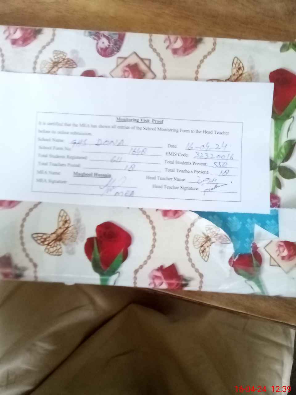 | Certified that this School was Inspected by the Undersigned MEA/DMO Today and the Information Stated Above is as Per Record. | |||||