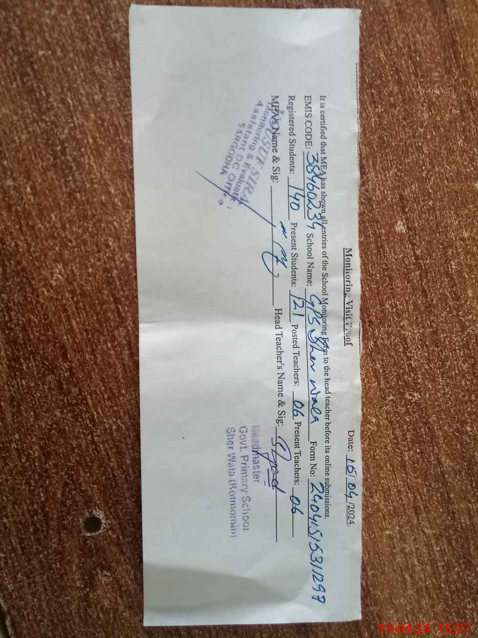 | EMIS Code: 38460234 | Name of School: GPS SHER WALA | |||
