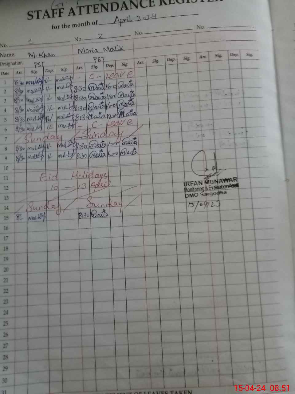 | Name: MU**** KH**** Designation: (School Headmaster's/Headmistress's) PST Phone/Cell Number: 03**** |