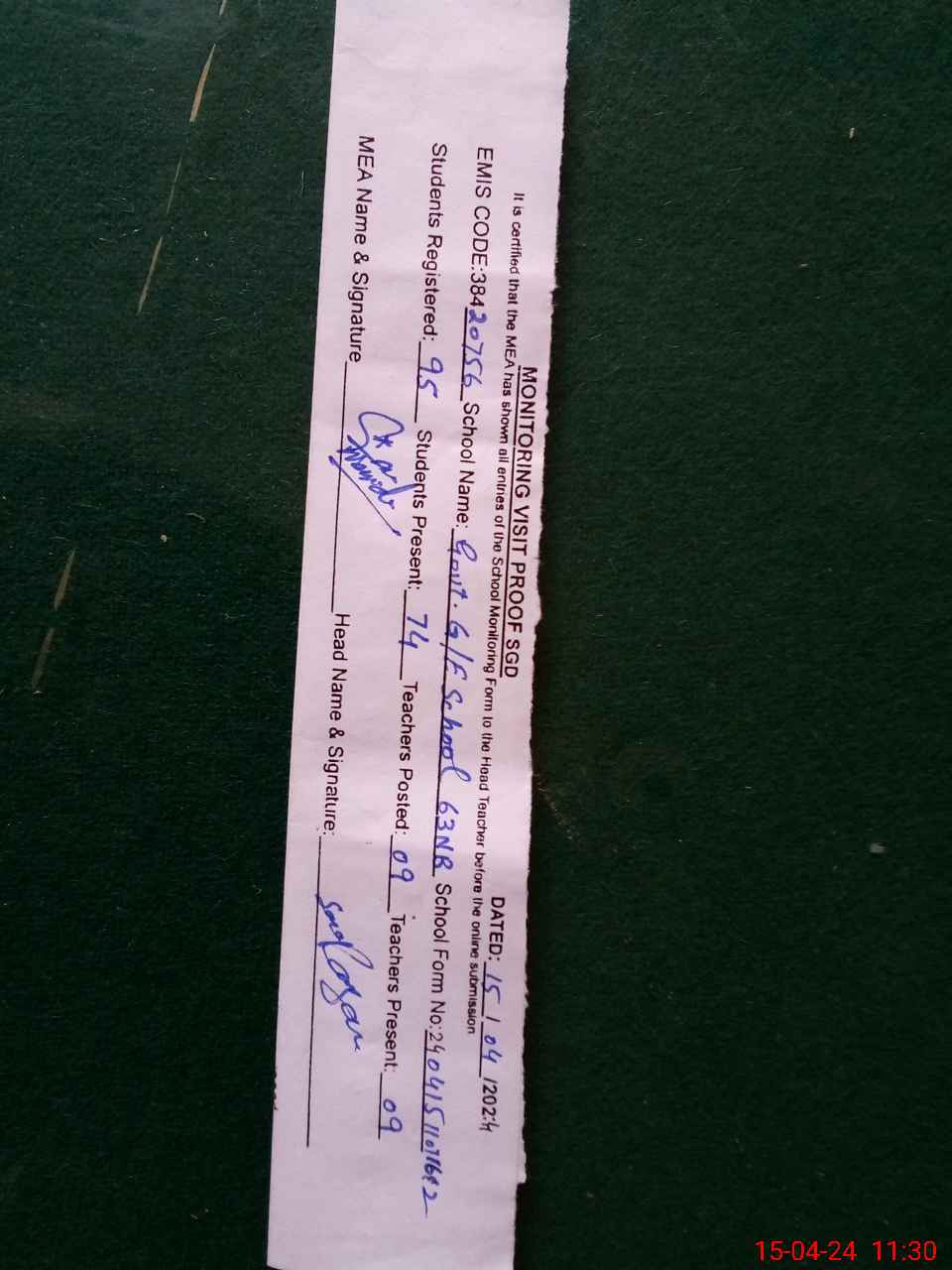 | EMIS Code: 38420756 | Name of School: GGES CHAK NO.63 NB | |||