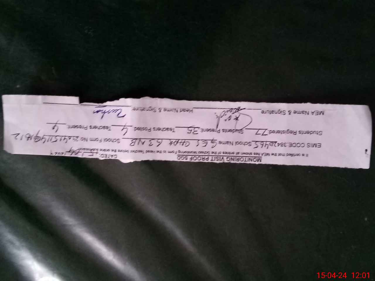 | Attendance Register | Head Teacher | MEA with School | Visit Proof |