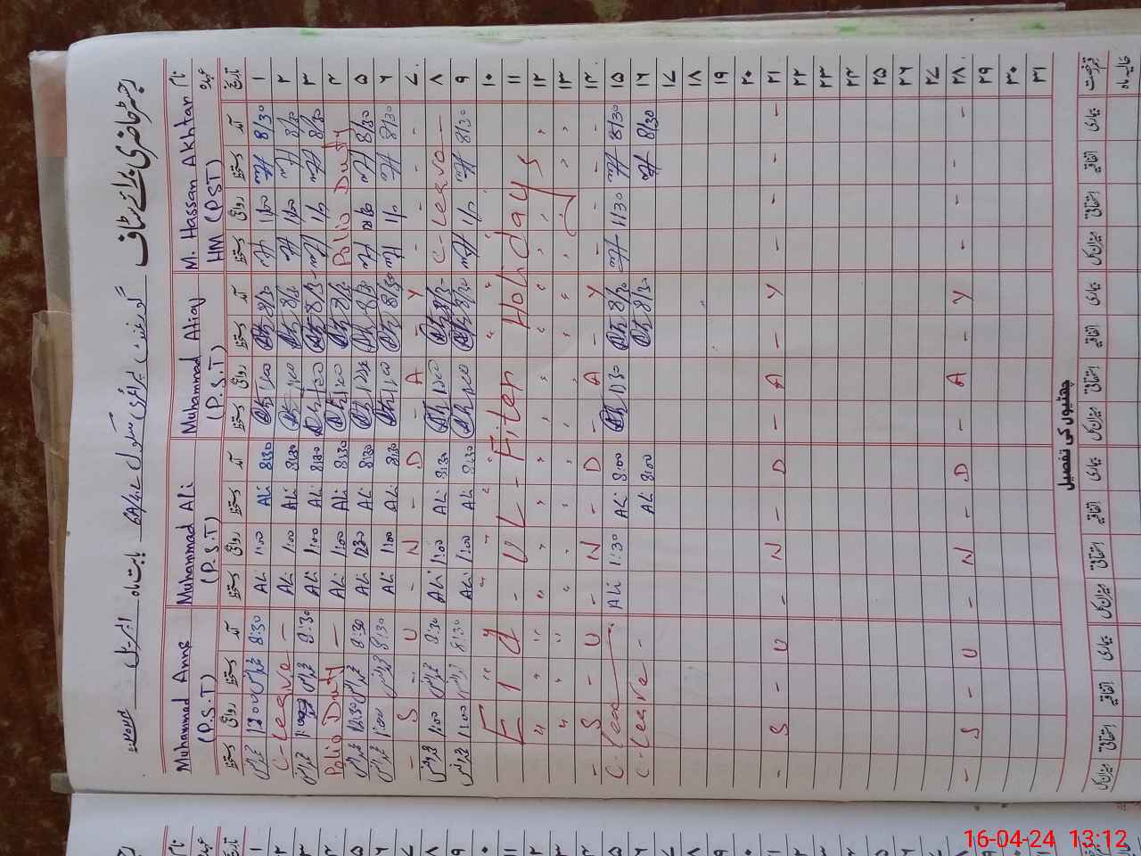 | CNIC | Full Name | Designation | R/C | Absence During Last Calender Month |