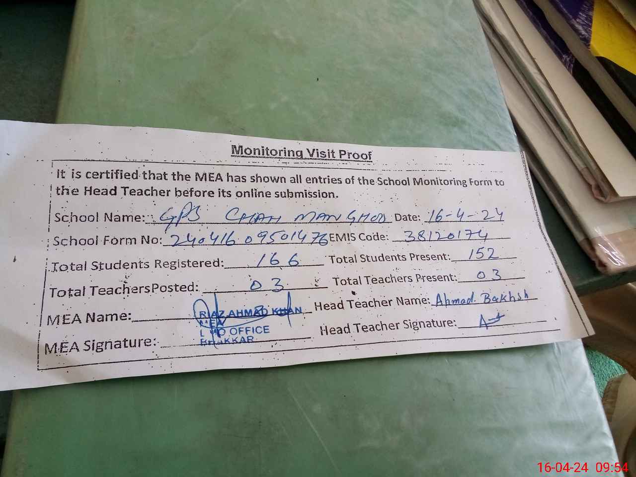 | EMIS Code: 38120174 | Name of School: GPS CHAH MANGHOO | |||