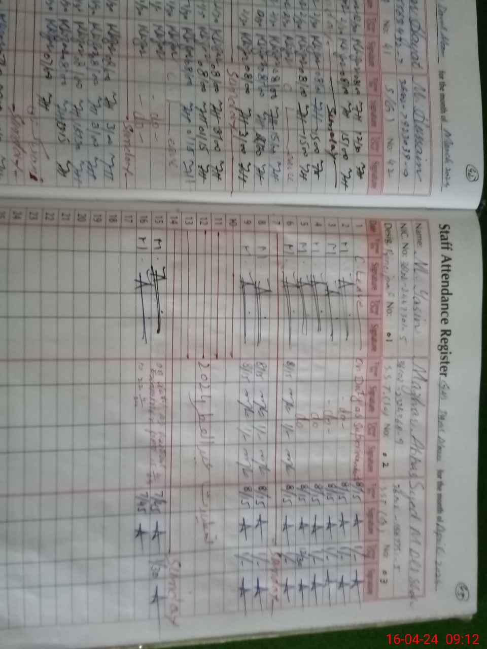 | CNIC | Full Name | Designation | R/C | Absence During Last Calender Month |