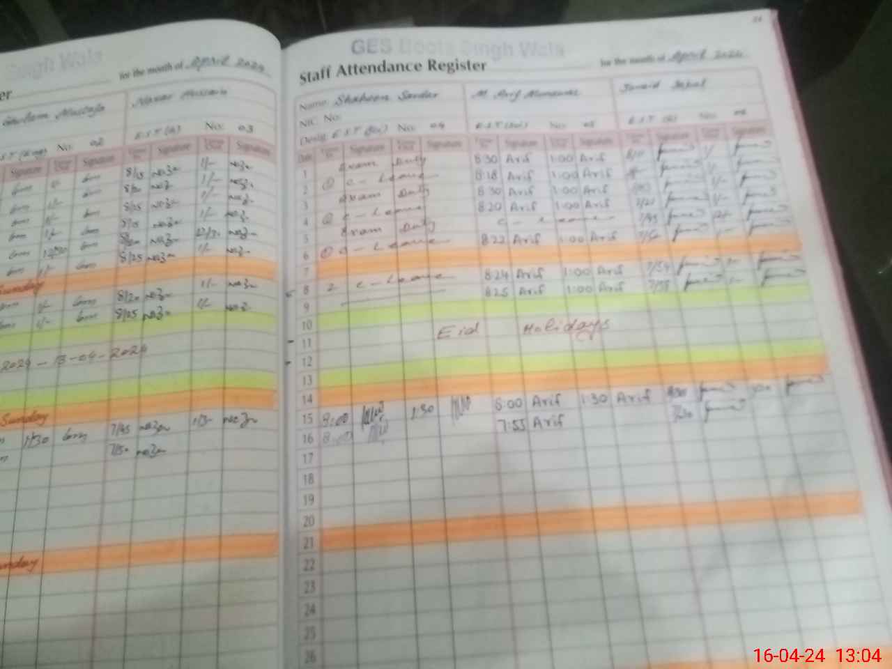 | CNIC | Full Name | Designation | R/C | Absence During Last Calender Month |