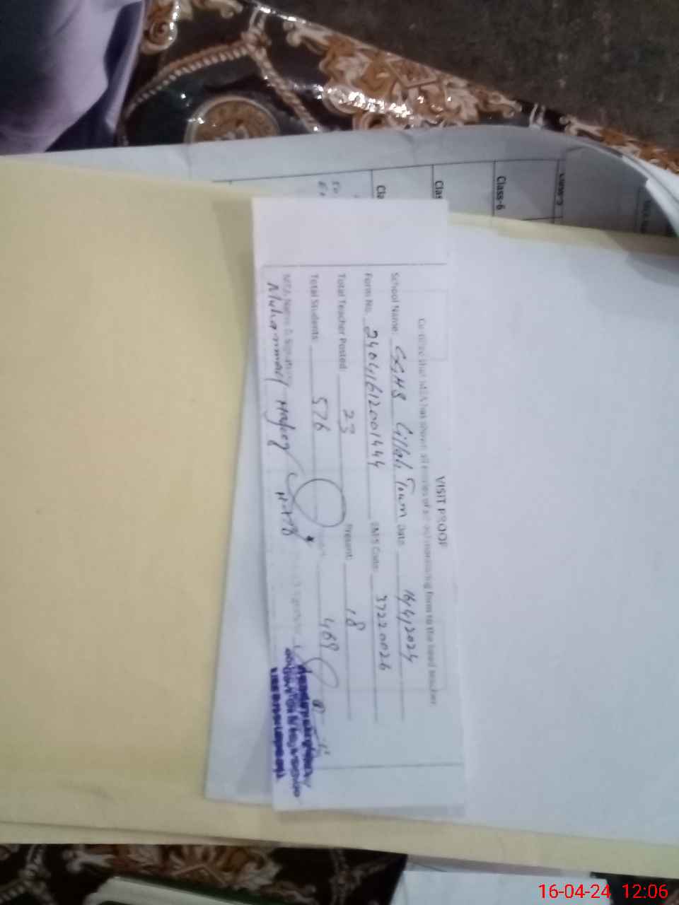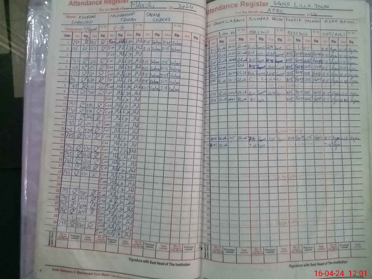 | Remarks (Use Separate Page if Required): Sir GGHS Lillah Town Teacher EST Shamim and SSE Fouzia Yasmin was Absent from school Both put their leave today 1642024 after school time at 0920 hrs and Head Teacher Shumaila Banu approved very late at 1120 hrs before 5 minutes reached my schedule visit Please check and instruct him EST Rashida Maureen Qazi was absent from school from one month from higher authorities not approved her leave till to date 16 April 2024 | |||||