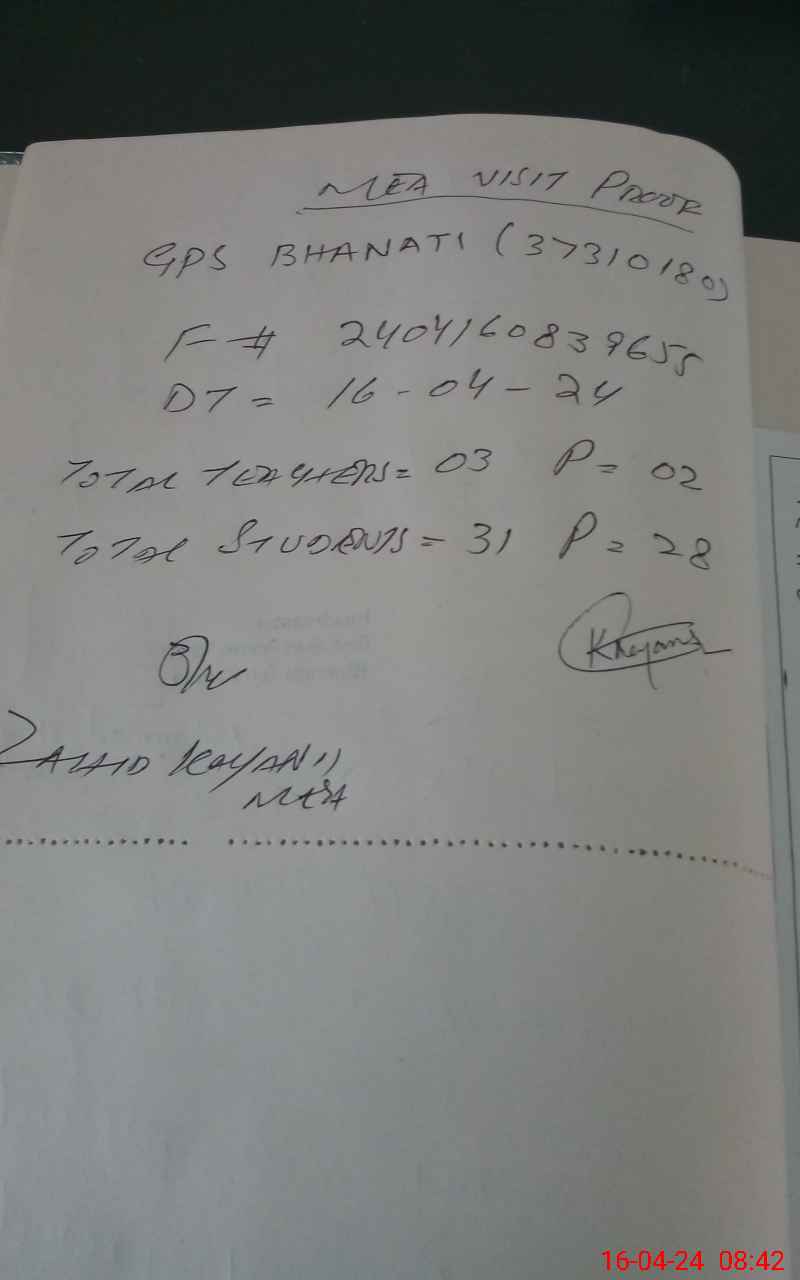 | EMIS Code: 37310180 | Name of School: GPS BHANATTI | |||