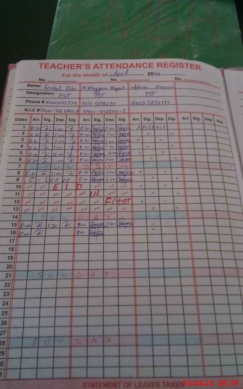 | Name: Mu**** Kh**** Designation: (School Headmaster's/Headmistress's) PST Phone/Cell Number: 03**** |