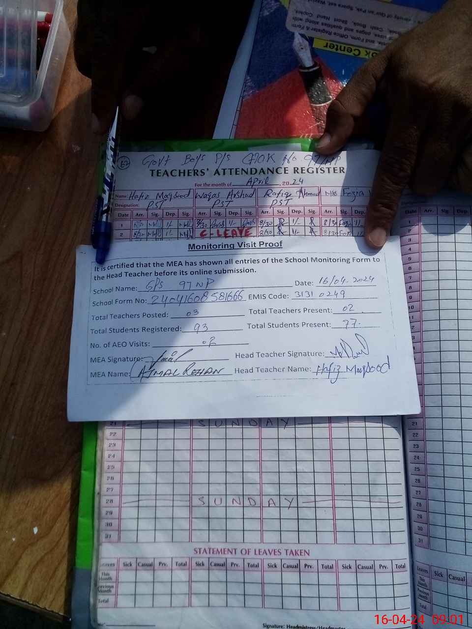 | EMIS Code: 31310249 | Name of School: GPS CHAK NO. 97/NP | |||