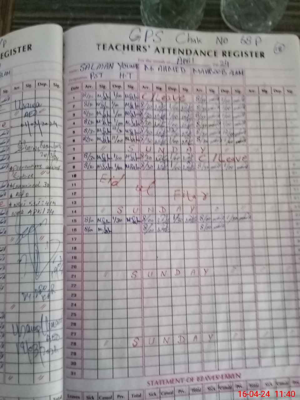 | Name: Sa**** Yo**** Designation: (School Headmaster's/Headmistress's) PST Phone/Cell Number: 03**** |