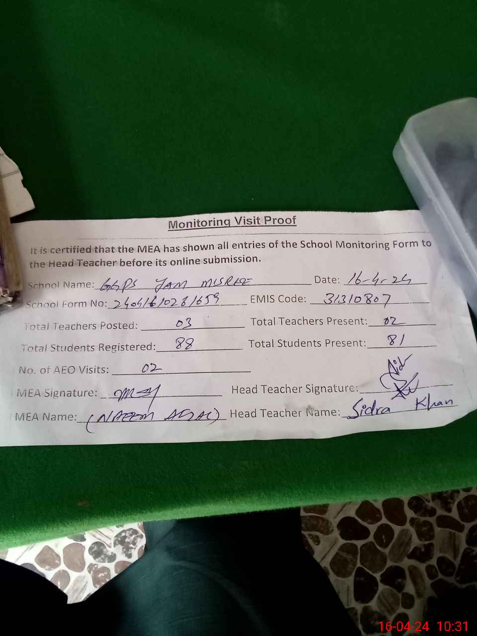 | EMIS Code: 31310807 | Name of School: GGPS JAM MISREE | |||