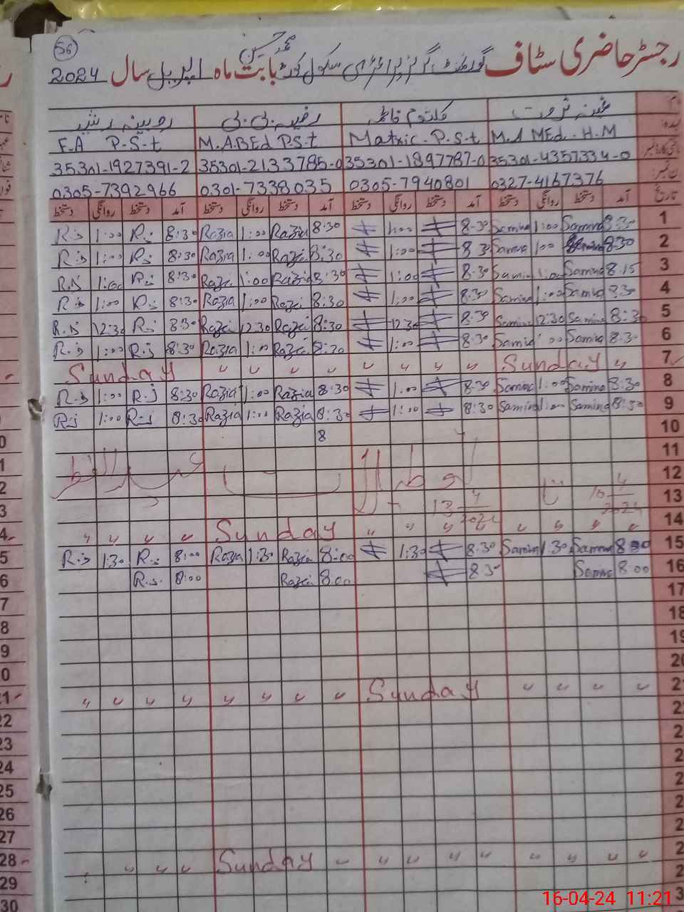 | CNIC | Full Name | Designation | R/C | Absence During Last Calender Month |