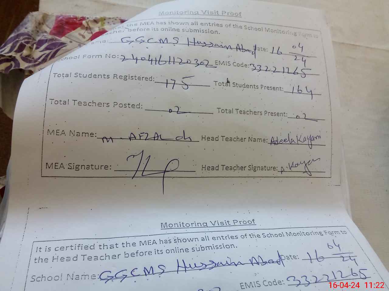 | EMIS Code: 33221265 | Name of School: GGCMS HUSSAIN ABAD | |||