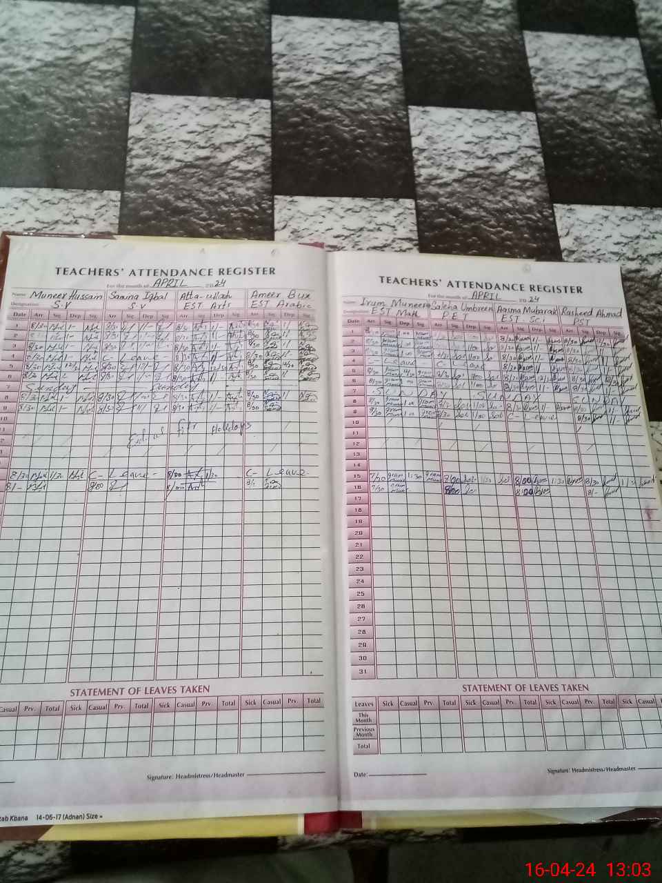 | Leave | Duty | Absent | Maternity | Medical | Ex- Pak |