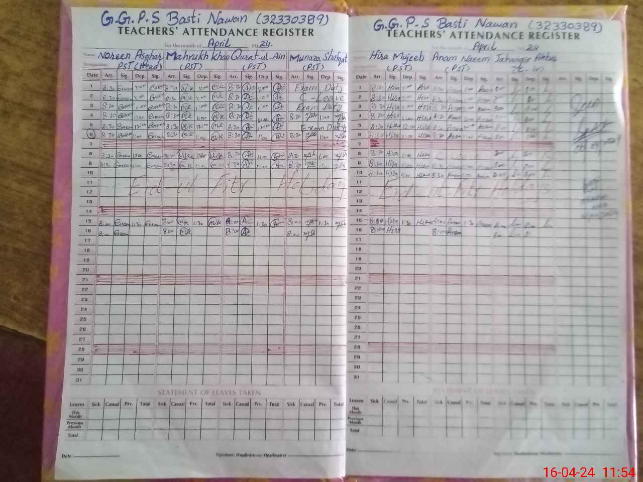 | Leave | Duty | Absent | Maternity | Medical | Ex- Pak |