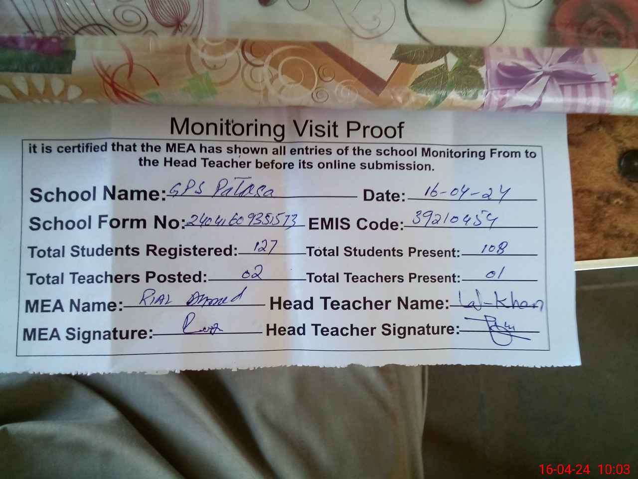| EMIS Code: 39210454 | Name of School: GPS PATASA P/O DHUPAI | |||