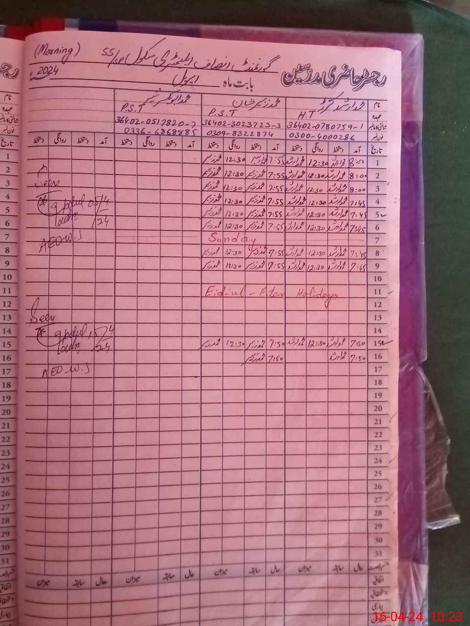 | Name: Mu**** Ar**** Designation: (School Headmaster's/Headmistress's) PST Phone/Cell Number: 03**** |