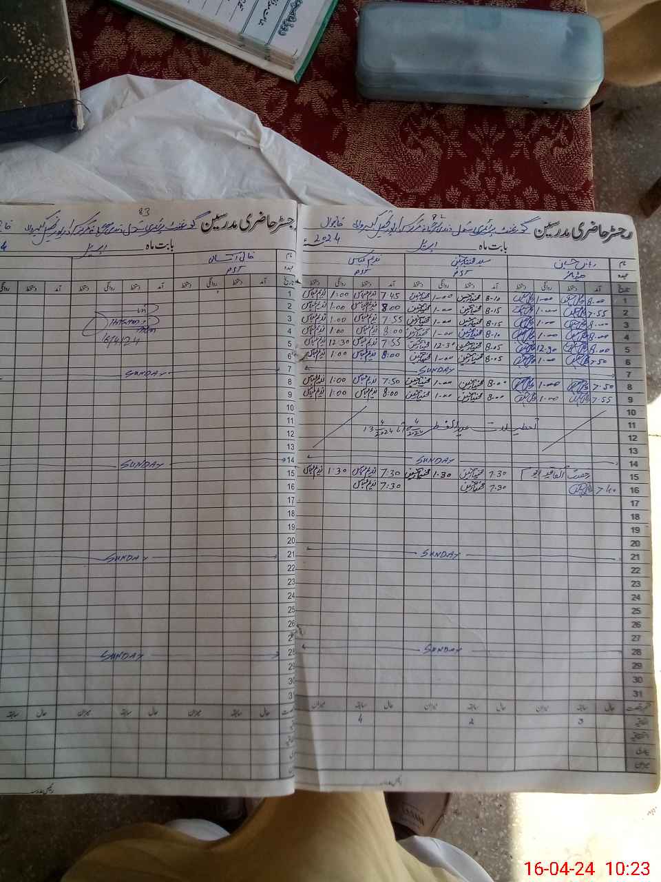 | CNIC | Full Name | Designation | R/C | Absence During Last Calender Month |