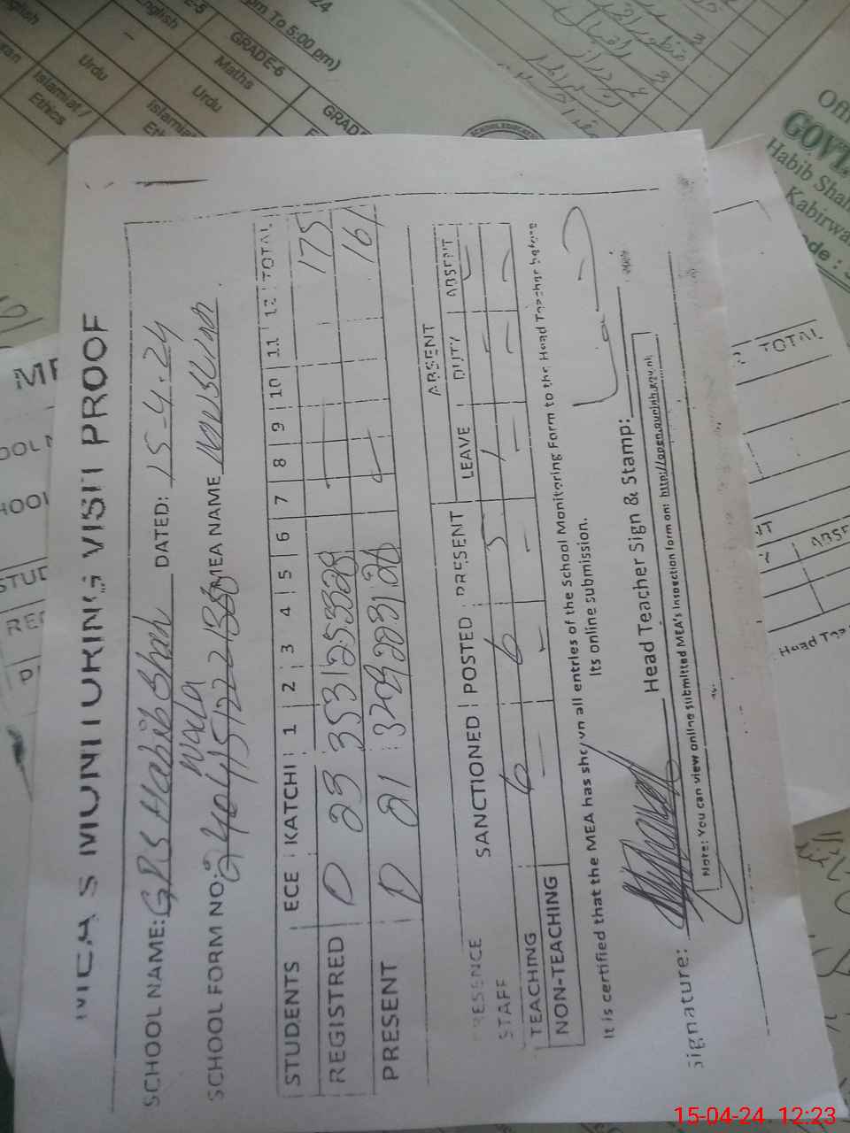 | EMIS Code: 36410182 | Name of School: GPS HABIB SHAH WALA, KABIRWALA | |||
