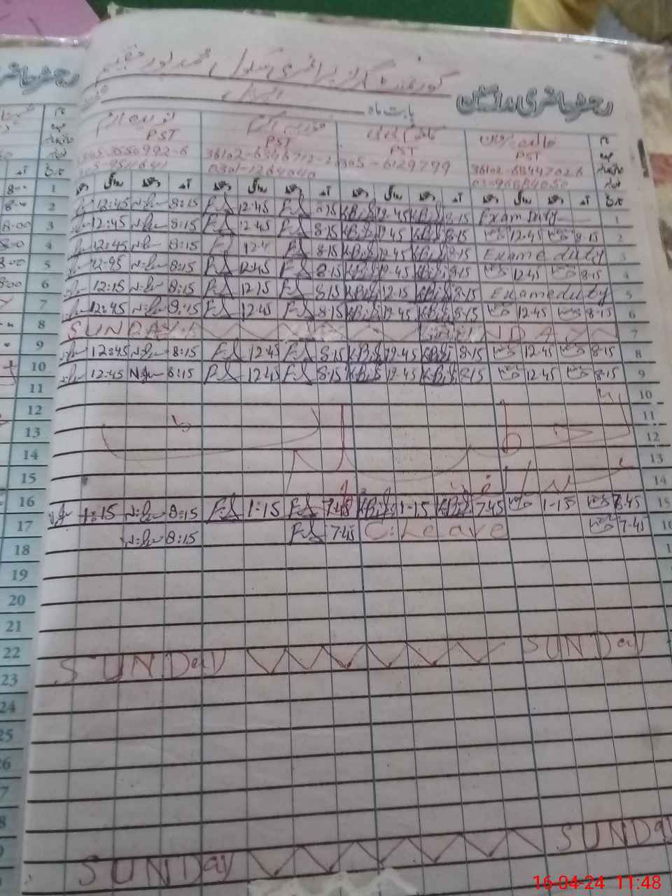 | CNIC | Full Name | Designation | R/C | Absence During Last Calender Month |