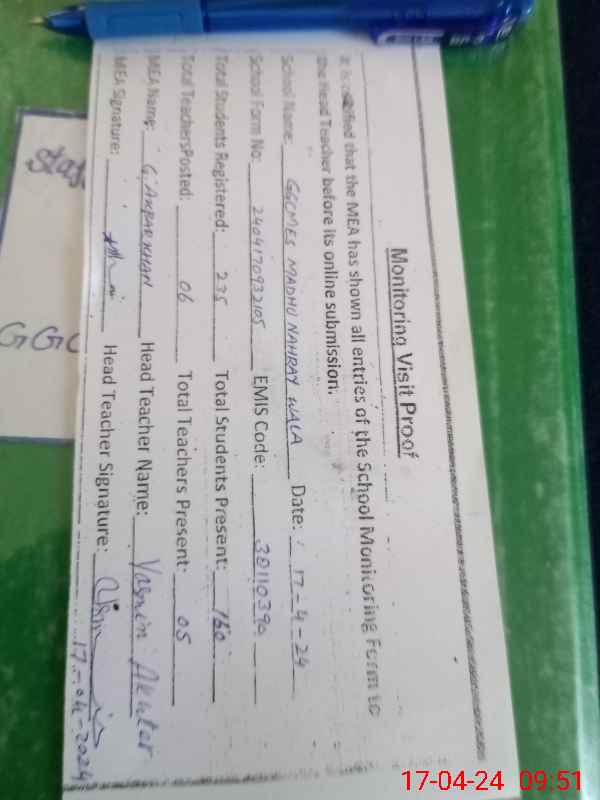 | Certified that this School was Inspected by the Undersigned MEA/DMO Today and the Information Stated Above is as Per Record. | |||||