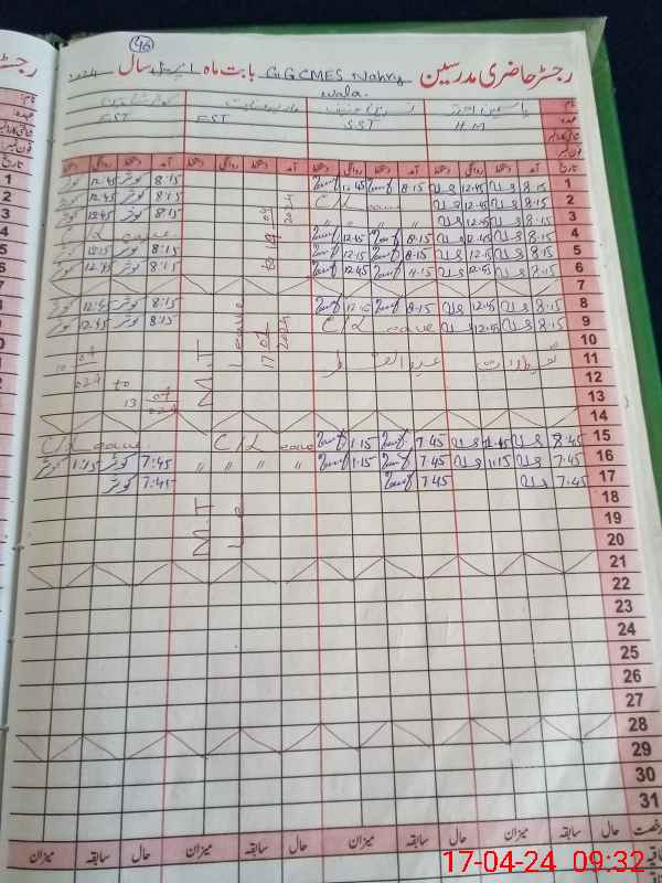 | CNIC | Full Name | Designation | R/C | Absence During Last Calender Month |