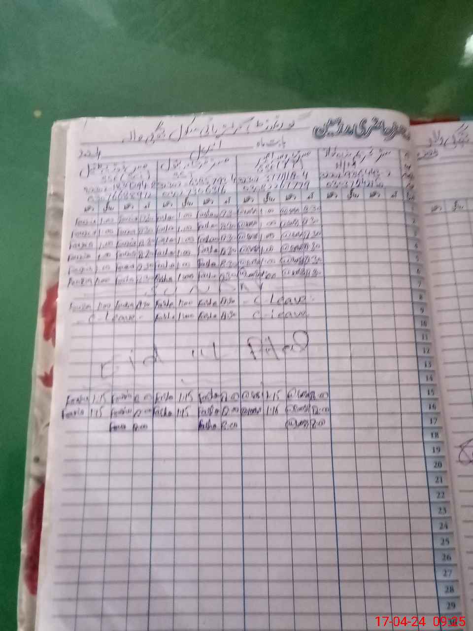 | CNIC | Full Name | Designation | R/C | Absence During Last Calender Month |