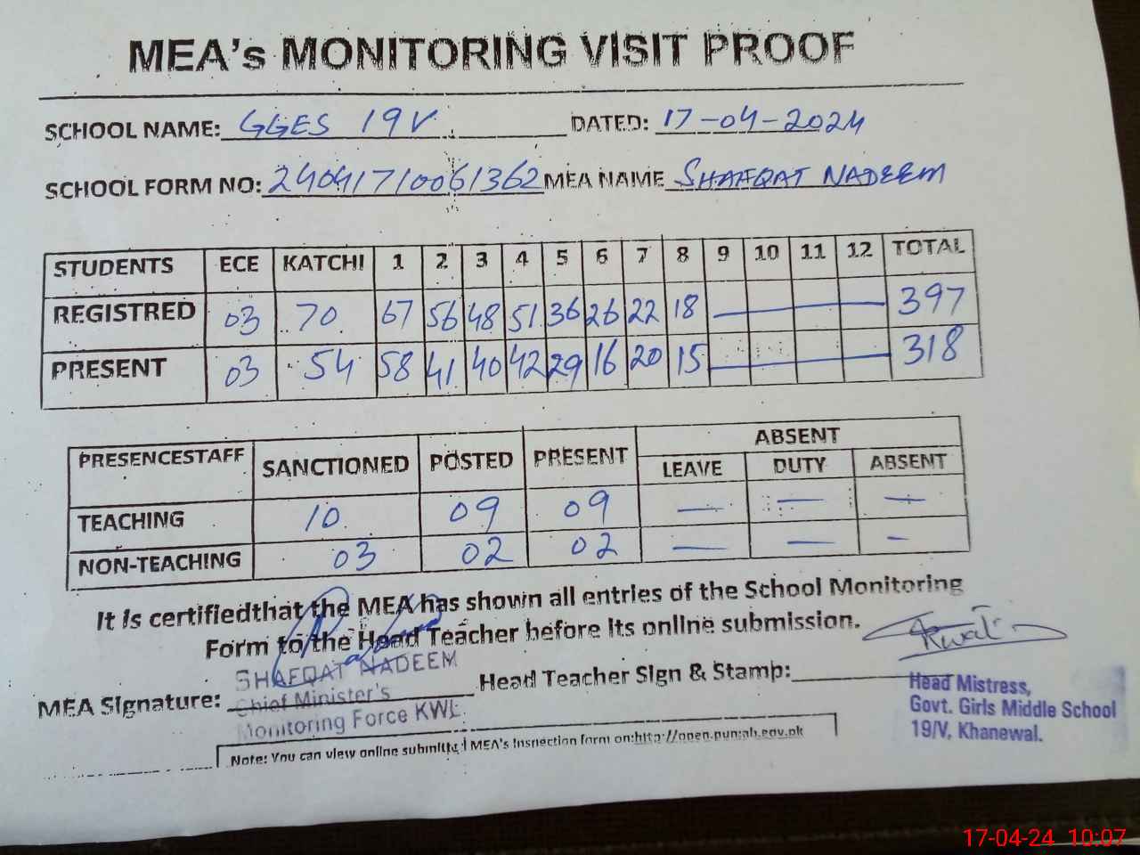 | EMIS Code: 36420393 | Name of School: GGES 19/V, KHANEWAL | |||