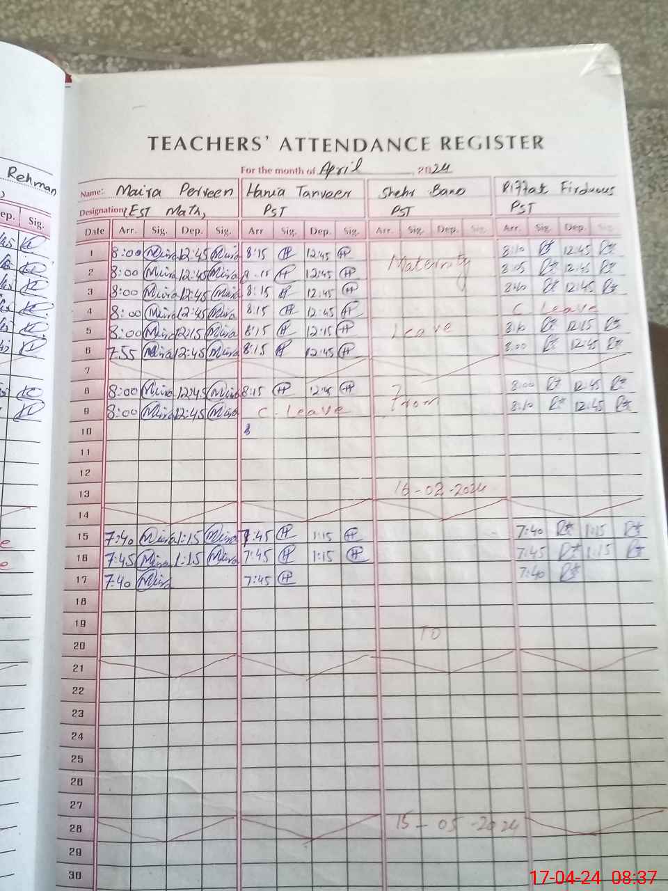 | Leave | Duty | Absent | Maternity | Medical | Ex- Pak |