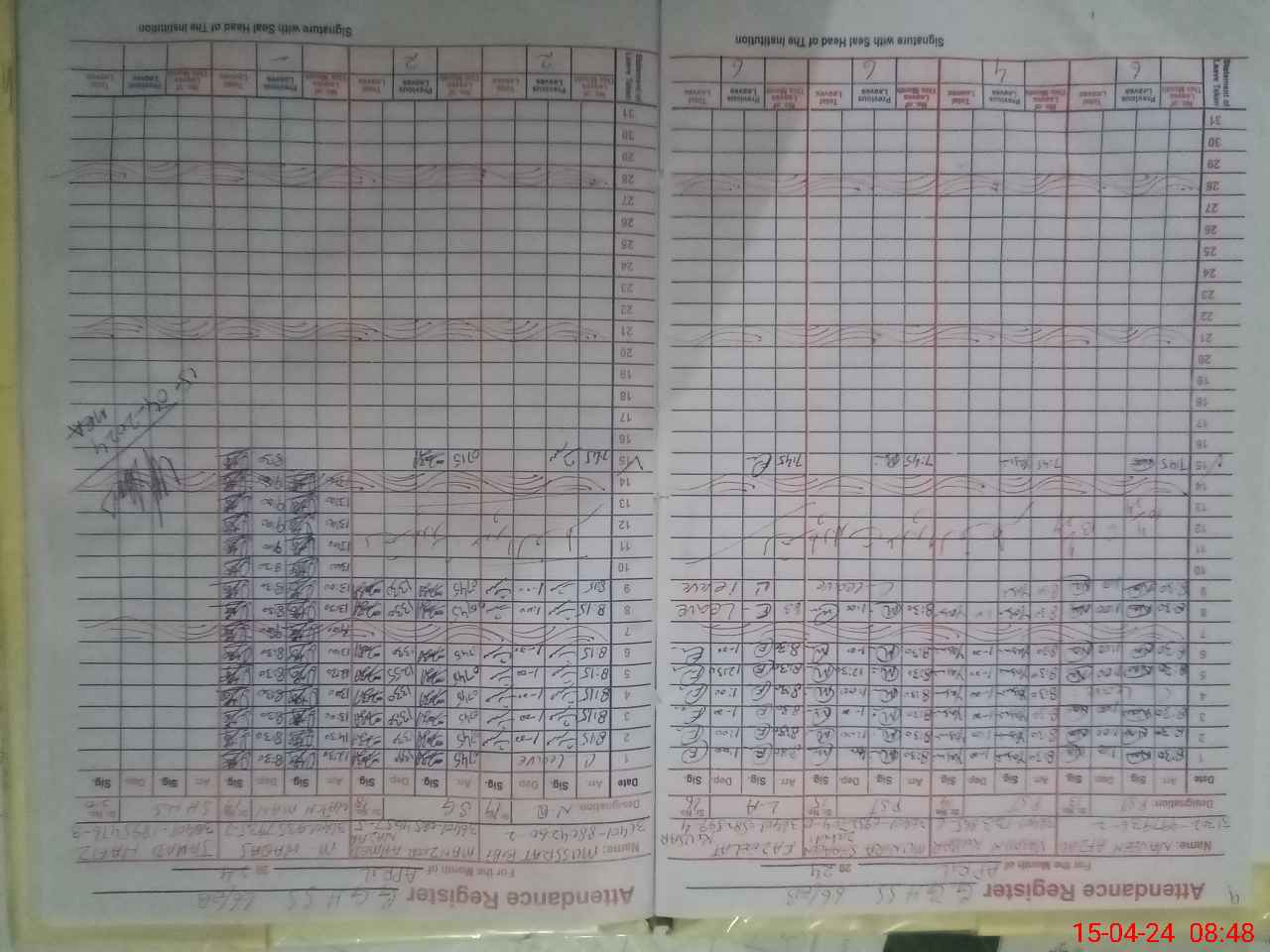 | Total Students Present | 0 | 0 | 8 | 30 | 20 | 26 | 12 | 20 | 22 | 80 | 90 | 30 | 120 | 40 | 45 | 543 |