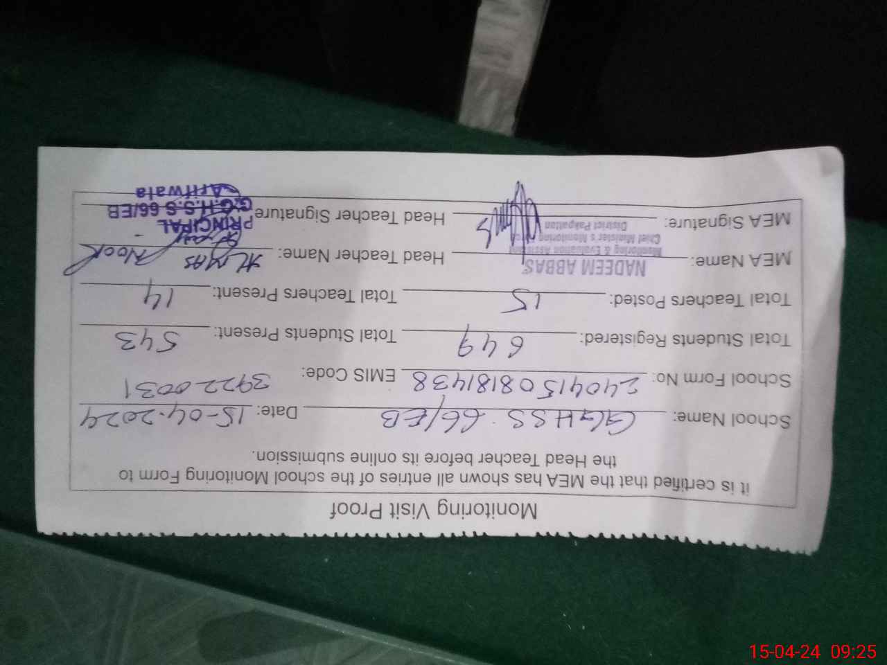 | EMIS Code: 39220031 | Name of School: GGHSS CHAK NO.66 EB | |||