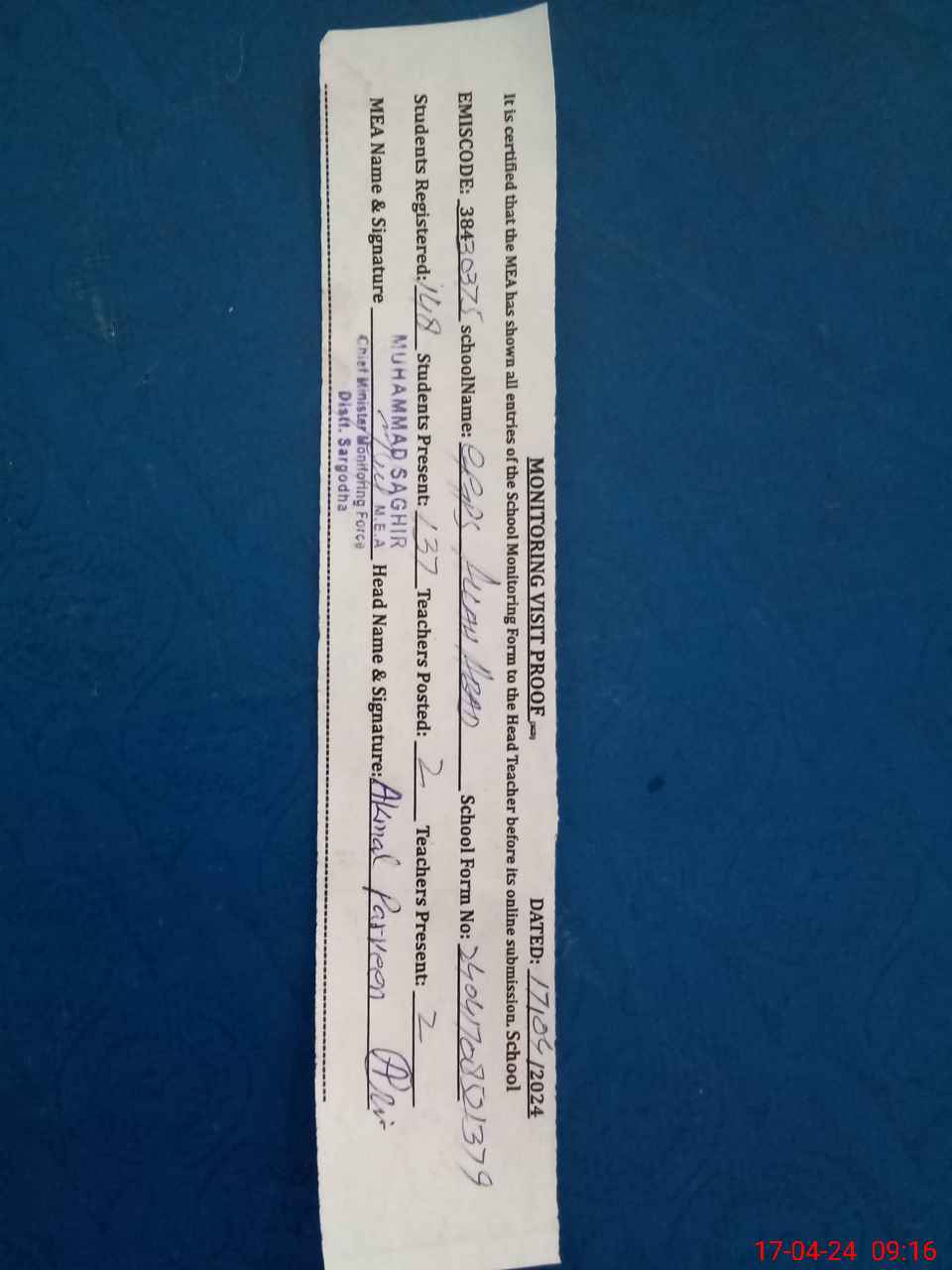 | EMIS Code: 38430375 | Name of School: GGPS ALLAH ABAD | |||