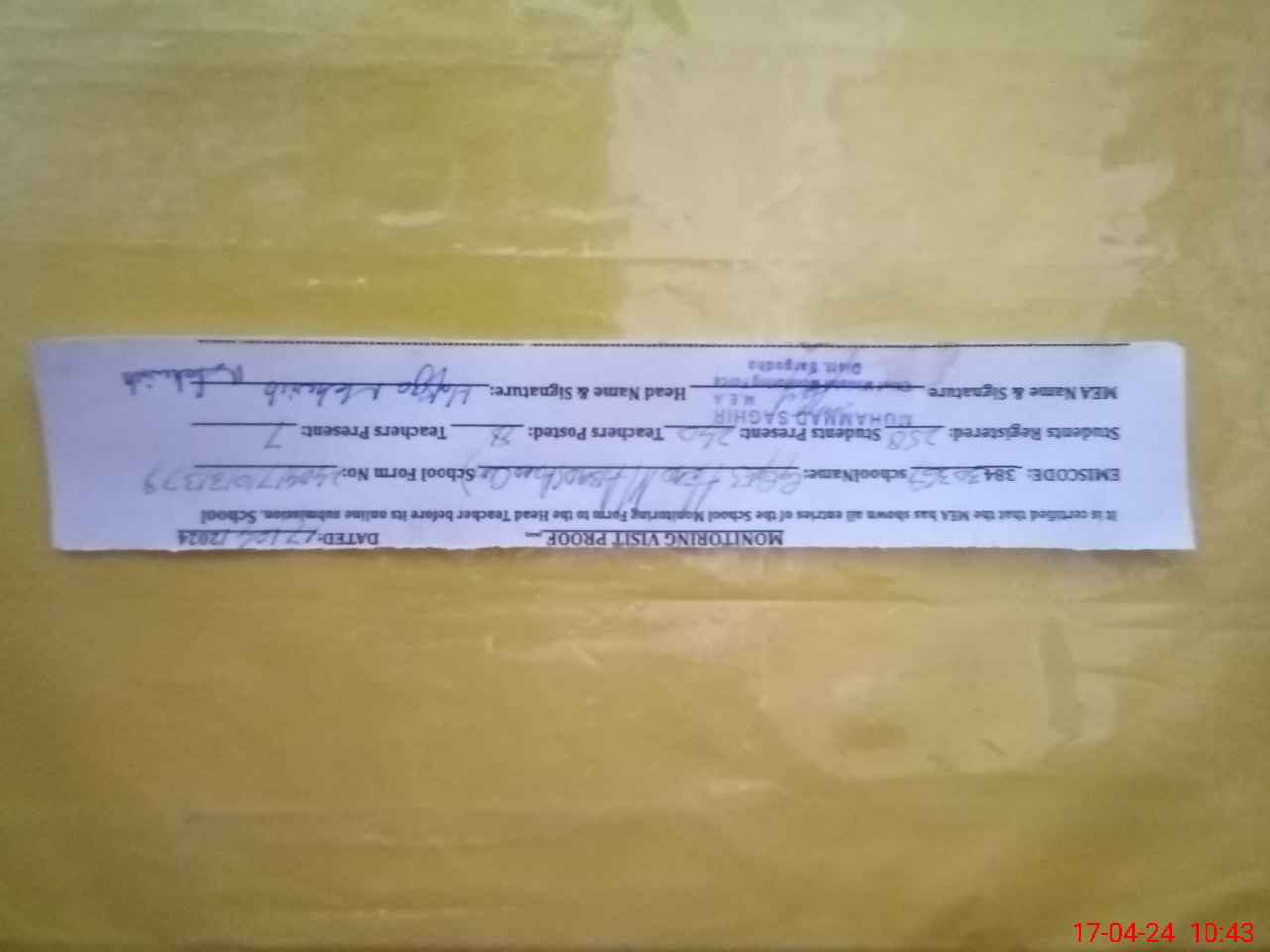 | Name: ME**** KA**** Designation: (School Headmaster's/Headmistress's) SSE (SCIENCE) Phone/Cell Number: 03**** |