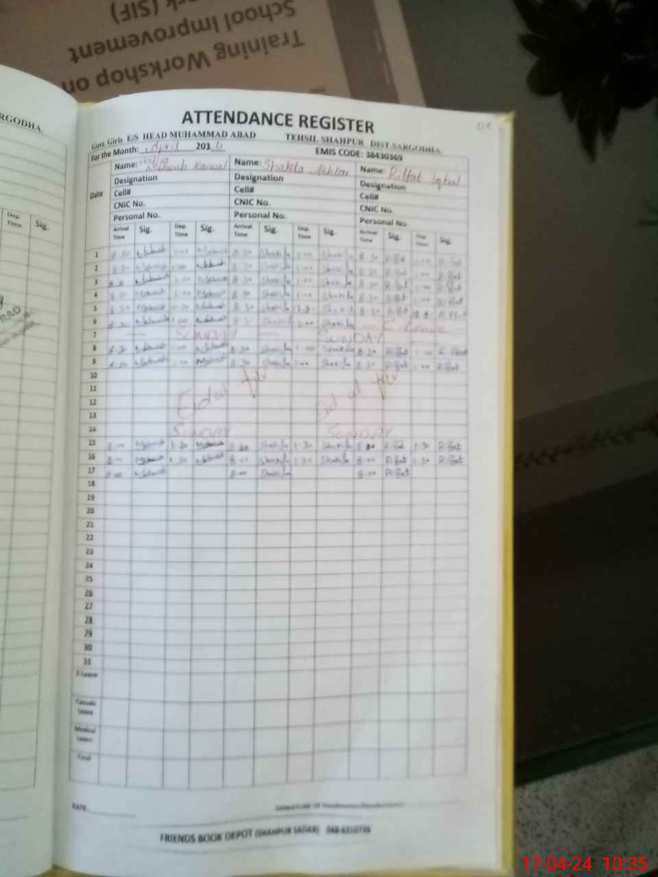 | CNIC | Full Name | Designation | R/C | Absence During Last Calender Month |