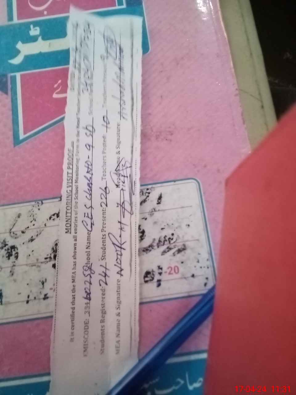 | EMIS Code: 38460252 | Name of School: GES CHAK NO.9 SB | |||