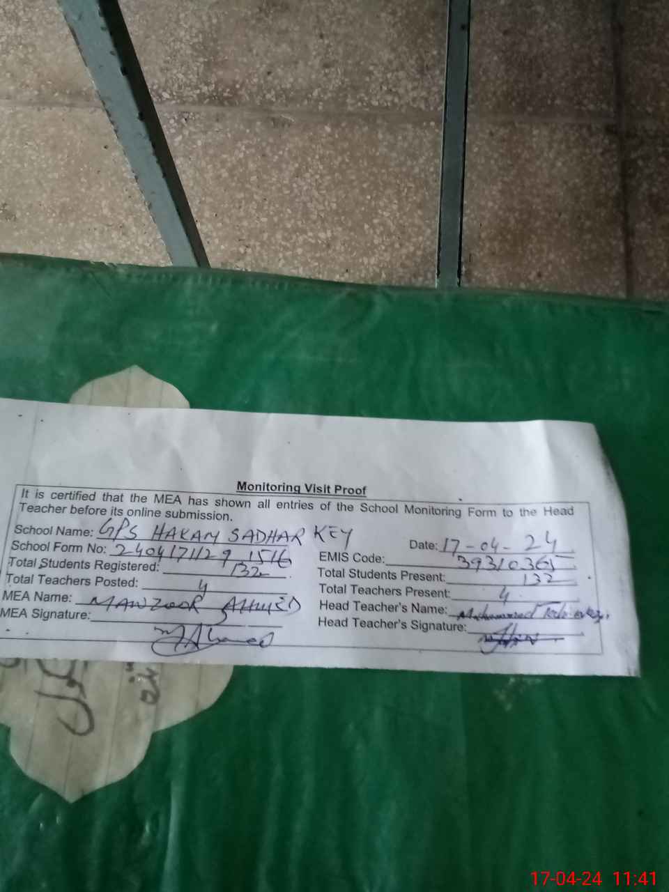 | EMIS Code: 39310365 | Name of School: GPS HAKAM SADHAR KEY | |||