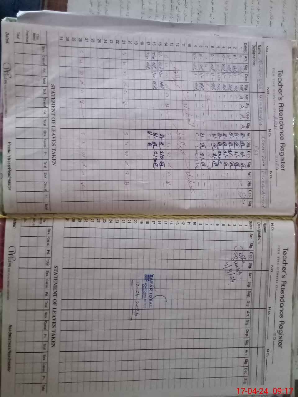 | Name: Us**** Sa**** Designation: (School Headmaster's/Headmistress's) PST Phone/Cell Number: 03**** |