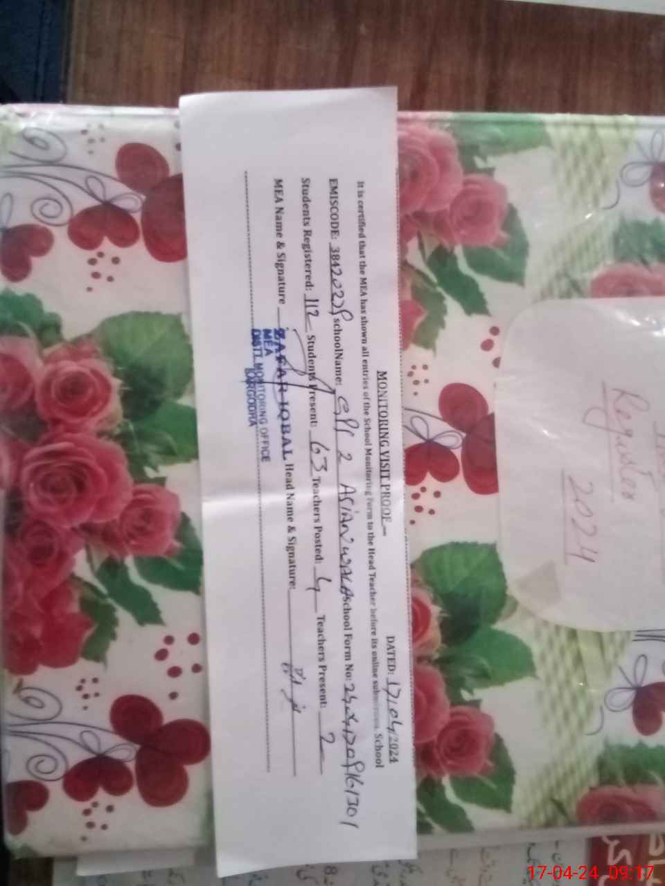 | Attendance Register | Head Teacher | MEA with School | Visit Proof |