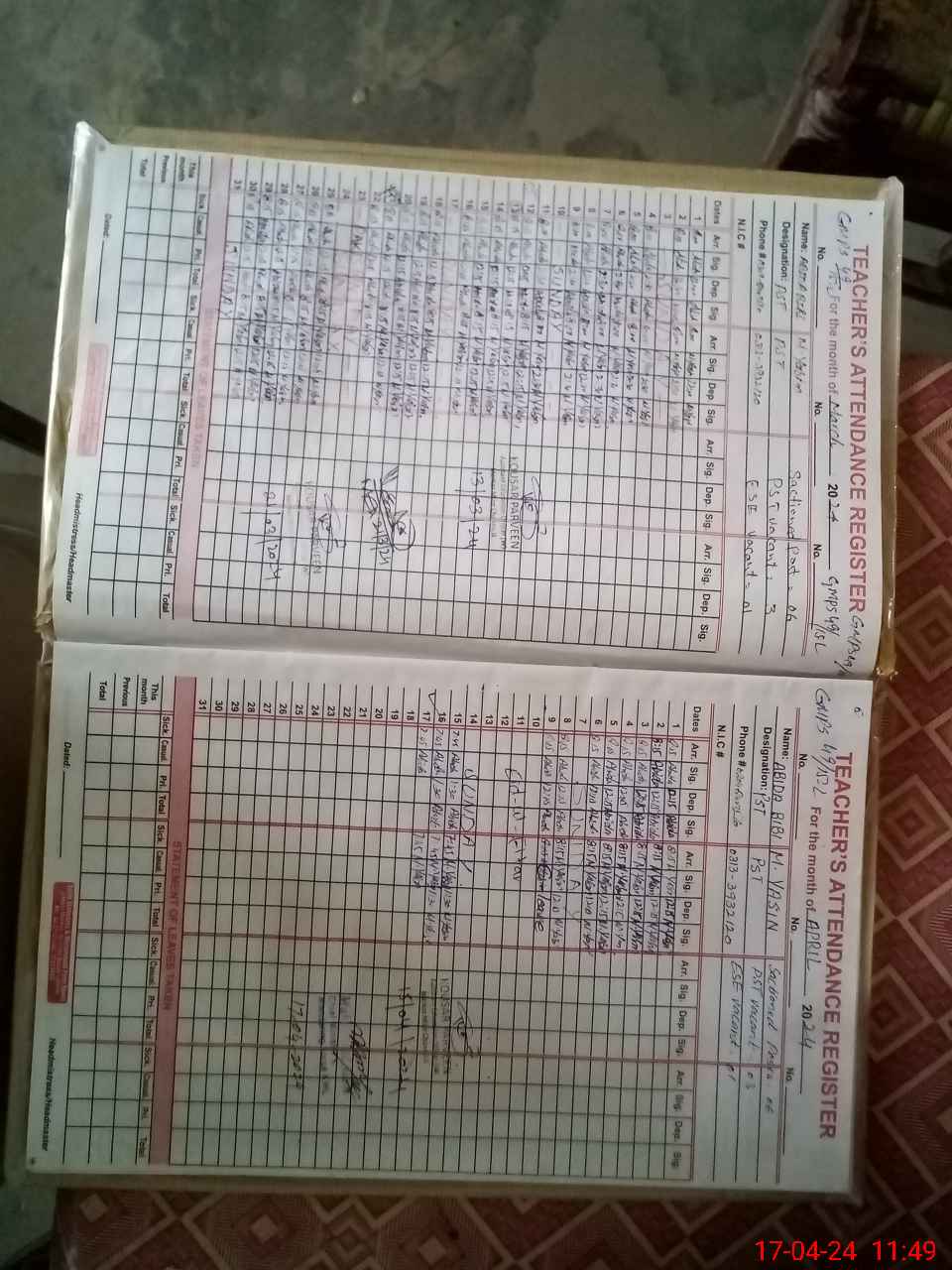 | Name: Ab**** Bi**** Designation: (School Headmaster's/Headmistress's) ESE (Arts) Phone/Cell Number: 03**** |