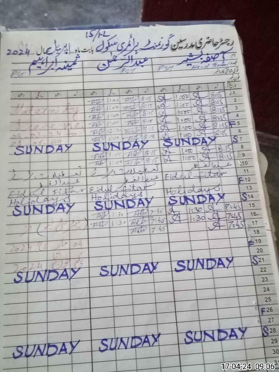 | 35**** | Sa**** Ib**** | Contract | 28 | 0 | 0 | 28 | 0 | 0 | 0 | 0 | 0 | Maternity | |