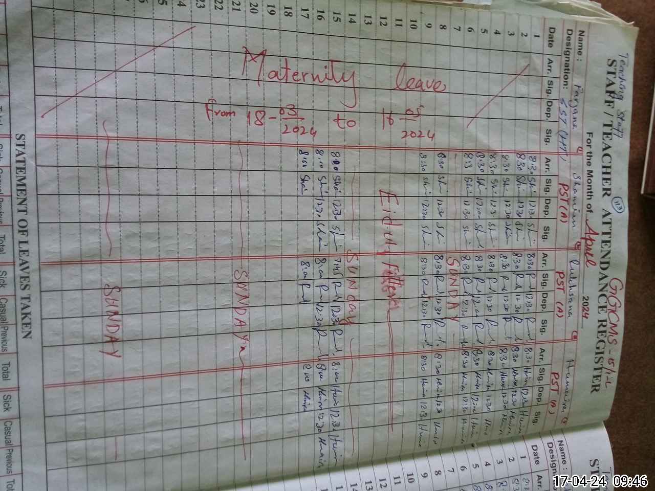 | 36**** | Fa**** | 2 | 17 | 0 | 0 | 14 | 0 | 0 | 0 | 0 | 3 | Maternity | |