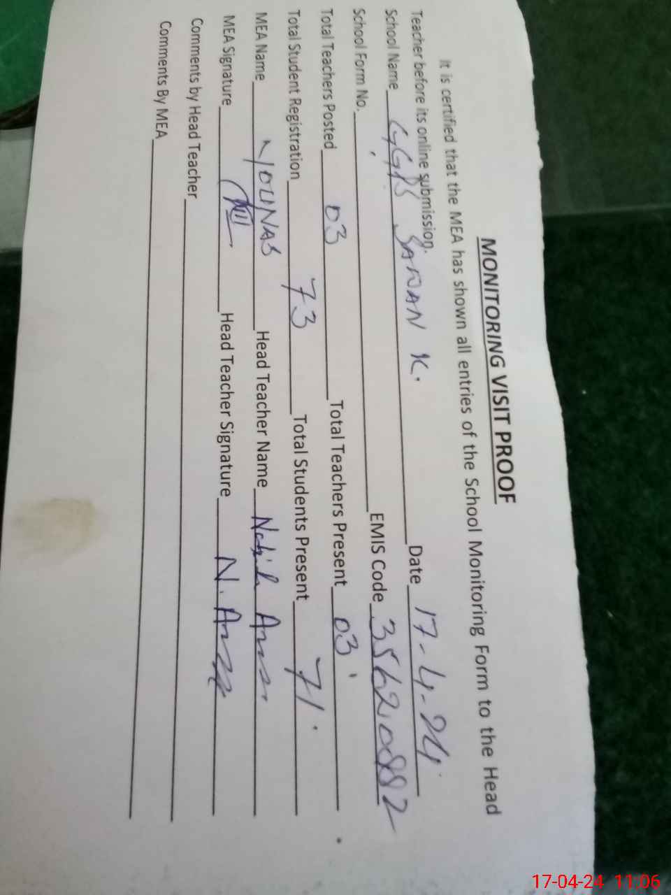 | EMIS Code: 35620882 | Name of School: GGPS SAWAN KA | |||