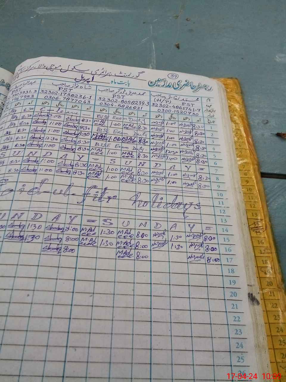 | Leave | Duty | Absent | Maternity | Medical | Ex- Pak |