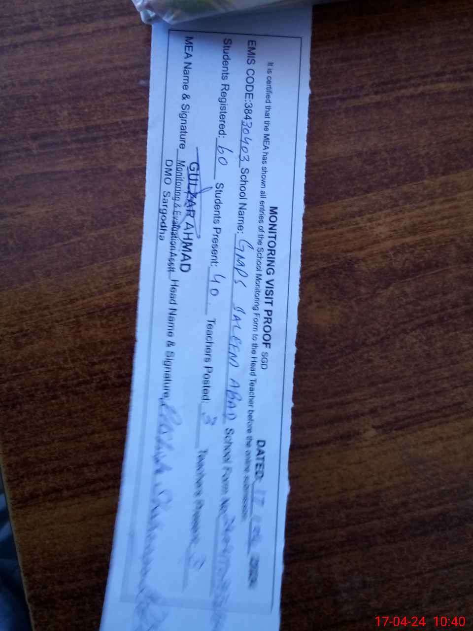 | EMIS Code: 38430403 | Name of School: GMPS SALEEM ABAD | |||