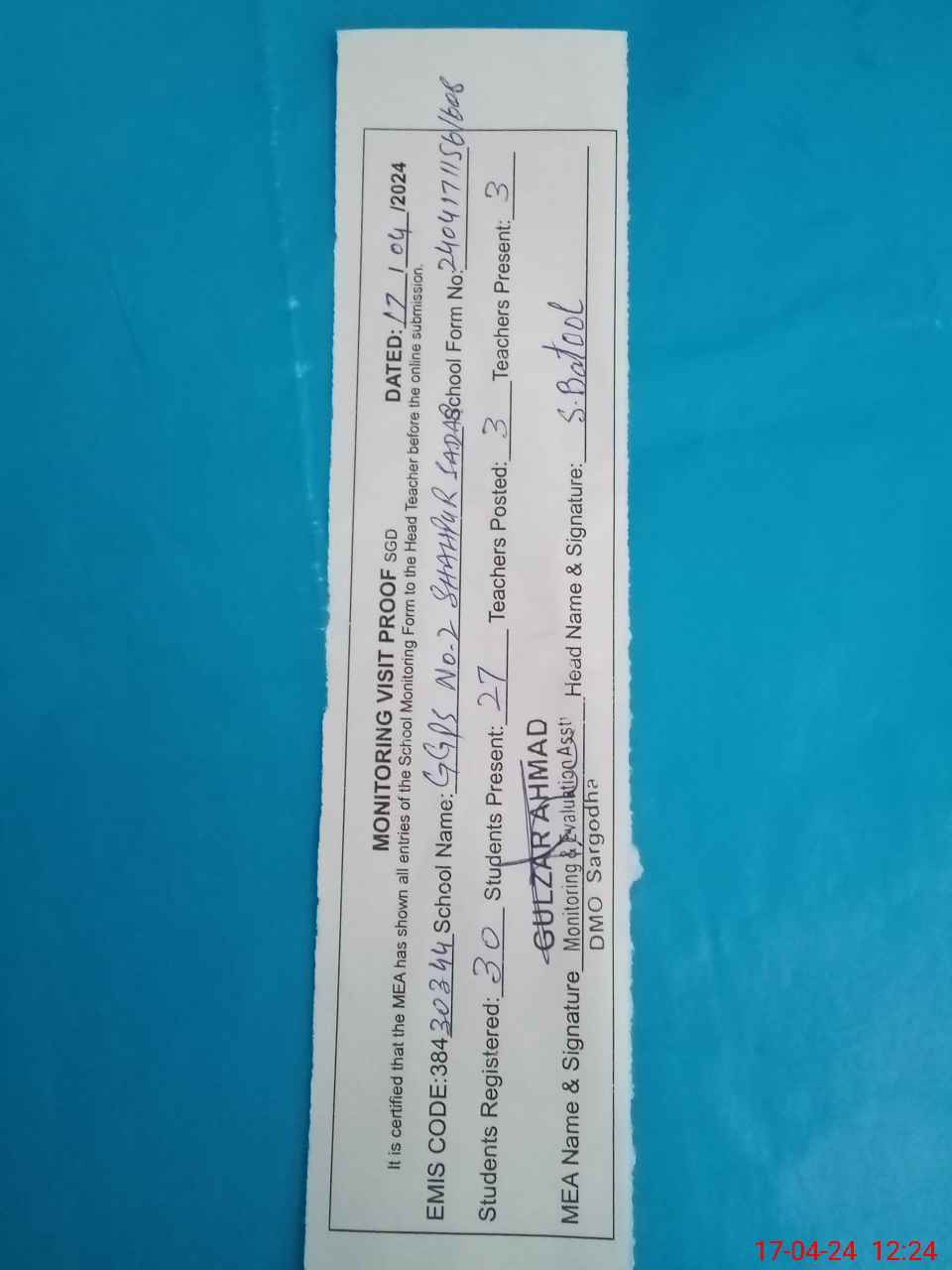 | EMIS Code: 38430344 | Name of School: GGPS NO.2 SHAHPUR SADAR | |||