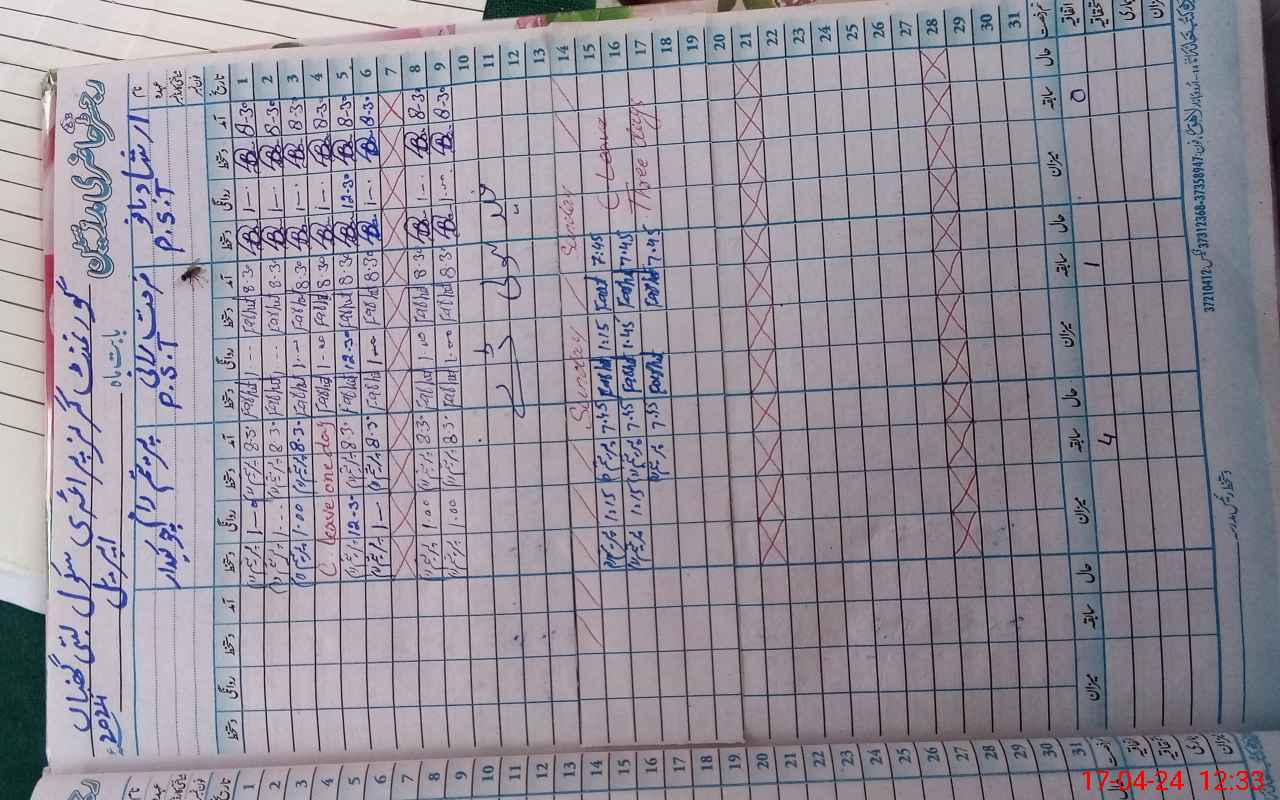 | Name: IR**** BA**** Designation: (School Headmaster's/Headmistress's) PST Phone/Cell Number: 03**** |