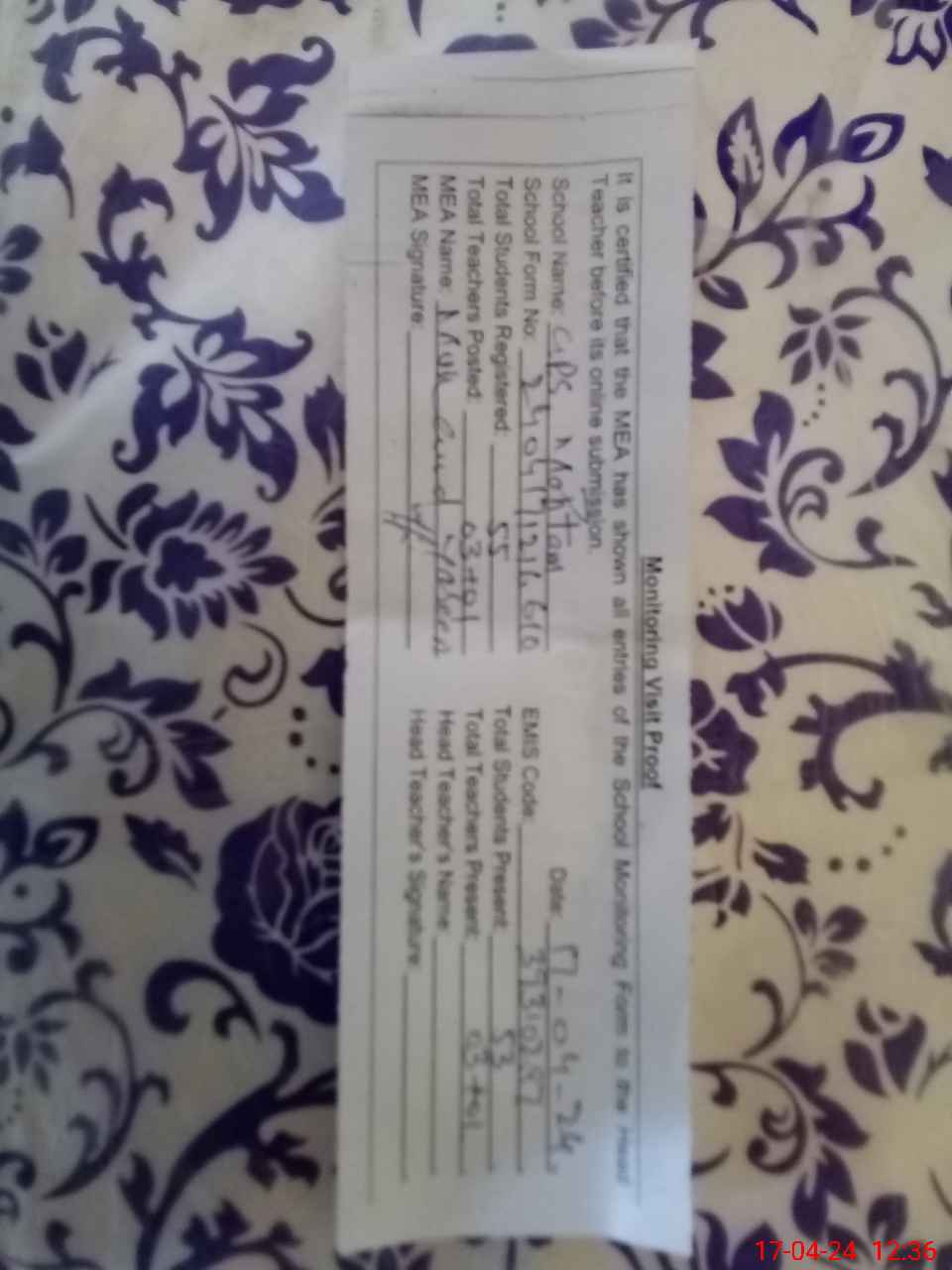 | Certified that this School was Inspected by the Undersigned MEA/DMO Today and the Information Stated Above is as Per Record. | |||||