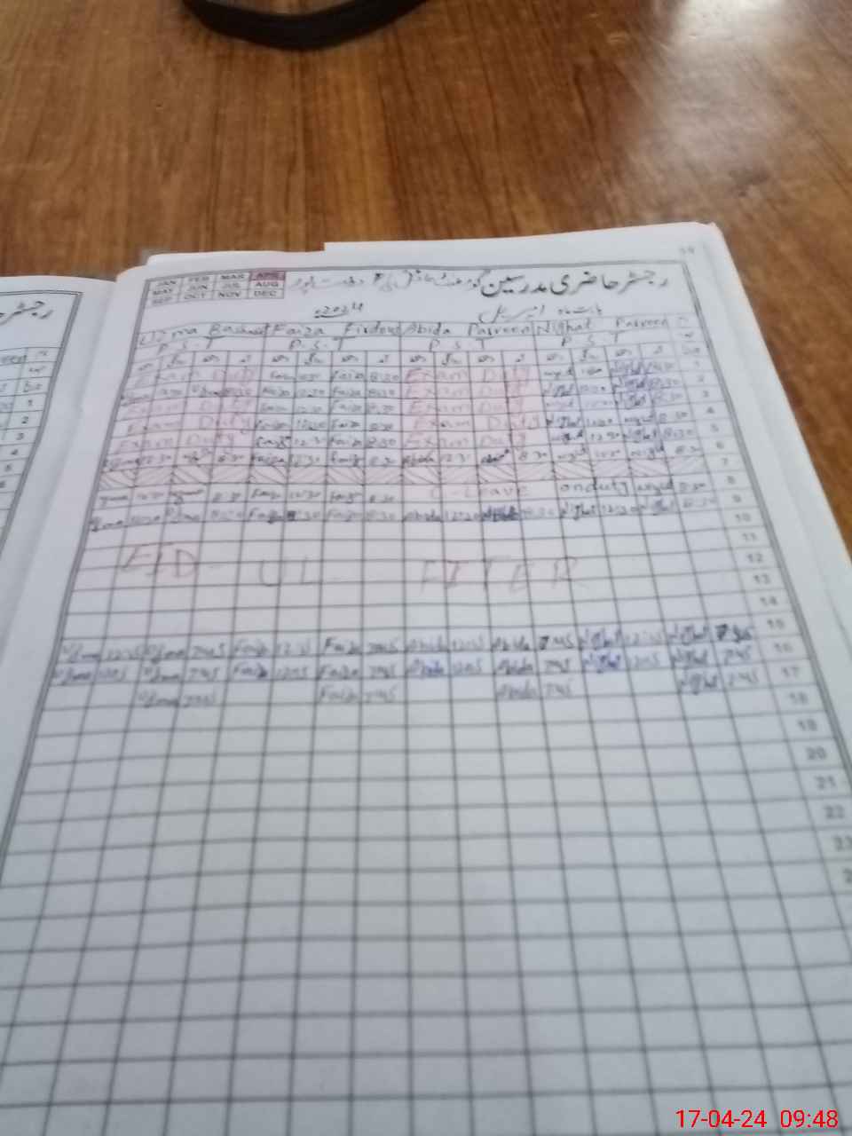 | CNIC | Full Name | Designation | R/C | Absence During Last Calender Month |
