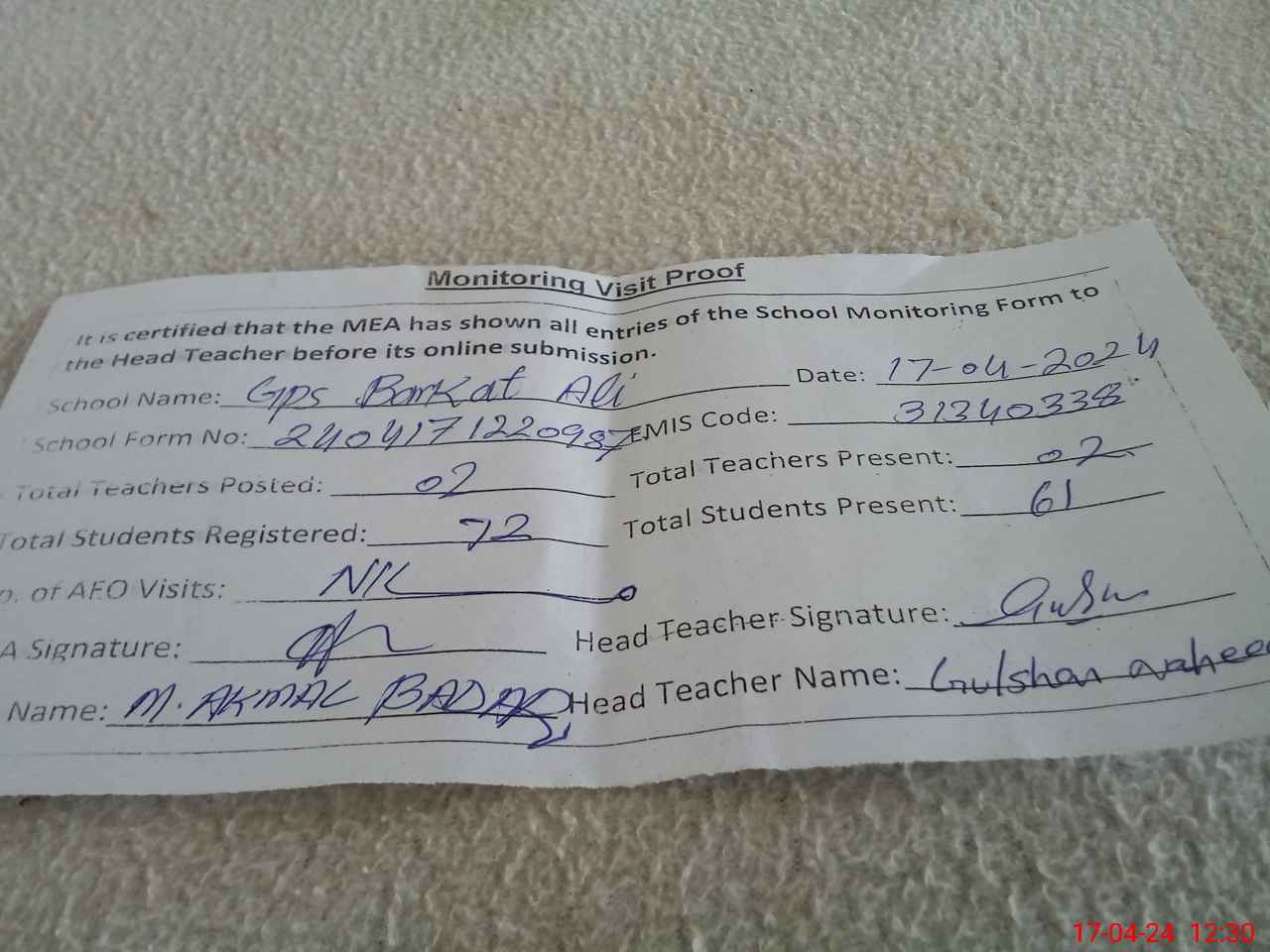 | EMIS Code: 31340338 | Name of School: GPS BASTI BARKAT ALI | |||
