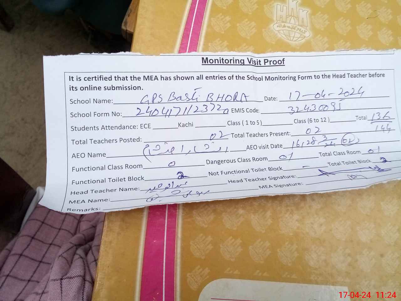 | EMIS Code: 32430095 | Name of School: GPS BASTI BHORA | |||